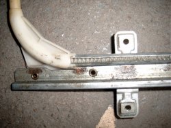 Da die Türen noch nicht ganz komplettiert waren, biß ich in den saueren Apfel und baute die Mechanik aus. Warum die Welle nun unbedingt durch die Halterung des inneren Türgriffs laufen muß, kann ich nicht beantworten. Es ist aber so.