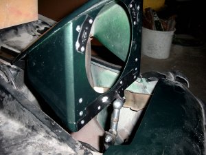 Und da wir gerade beim Nieten sind, habe ich gleich auch hinter die Nieten für die Bajonetthalter für die Scheinwerfereinsätze VA-U-Scheiben gesetzt um das GFK zu entlasten.