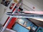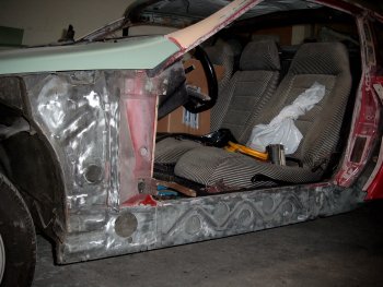 So ganz aktuell ist das Bild zwar nicht, denn die Türen sind mittlerweile draußen, gestrippt und auch grundiert. Es geht also mächtig voran! Etwas aufwendig war die Entlackung, oder soll man besser sagen "Entklebung" der Scheibenrahmen der Türen. Im Laufe der Jahre wurde die Dichtung wohl immer wieder neuverklebt, so daß sich eine zähe Oberfläche gebildet hatte. Schmirgeln brachte nix, die Drahtbürste versagte, aber mit der Heißluftpistole klappte es schließlich. Auffällig war, daß der Lack zum Teil recht heftig unterrostet war. Wiedereinmal die Bestätigung, daß Muränen im Verborgenen blühen.